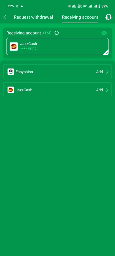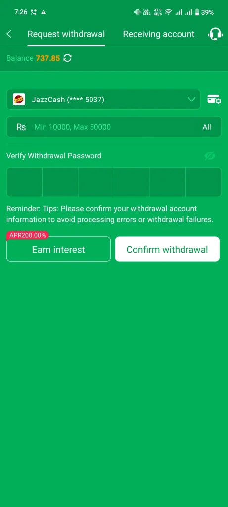 - Select the withdrawal procedure, whether you choose Jazz Cash or Easy Paisa wallet.